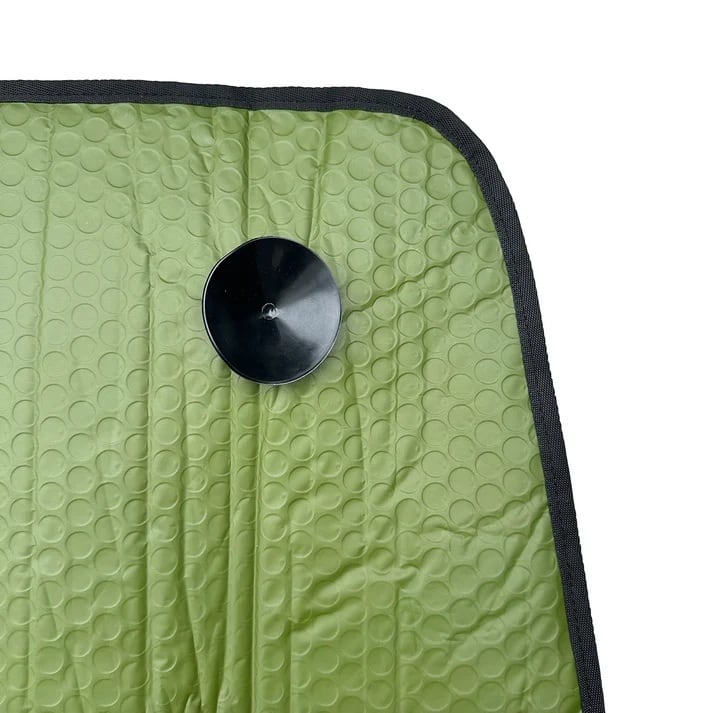 取付け・取り外しは付属の吸盤で簡単に行えます。収納バンド付でコンパクトに折りたたんで保管できます。