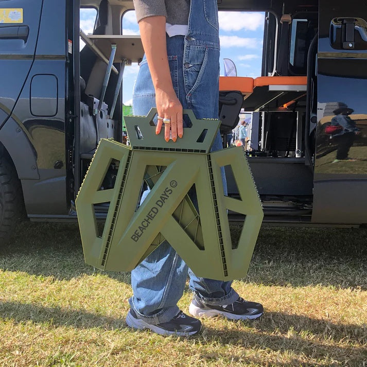 ベストセラーのマルチスタンド23cmのニュータイプ高さ39cm。サーフボードを載せたり、脚立・踏み台として使ったり、アウトドアライフにマルチに活躍。ミリタリーを彷彿させる無骨なカラーリングも魅力です。