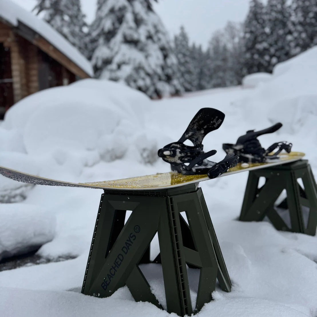2台で支えればサーフボードのリペア・ワックスアップや駐車場でのバインディングの調整にものスタンドに。せっかく使うならスタイリッシュなスタンドをどうぞ。