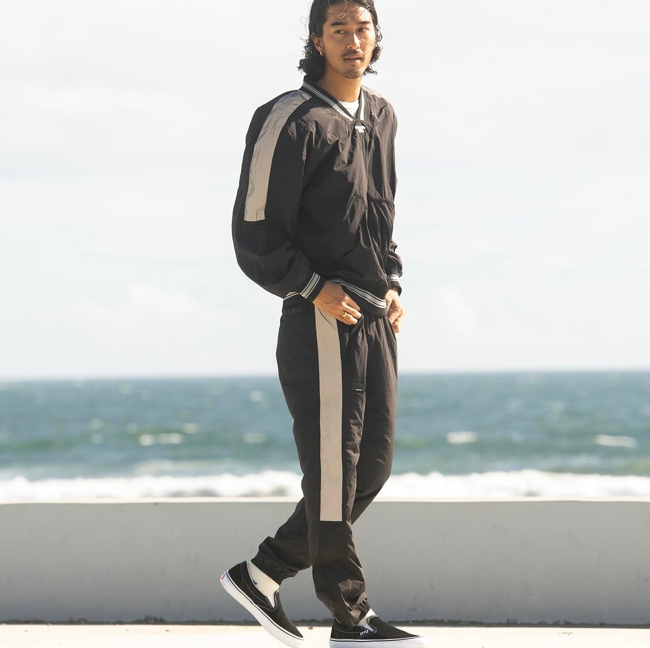 動きやすくリラックスして様々な体型にマッチするゴムウエスト仕様のサイドのリフレクターラインがアクセント。