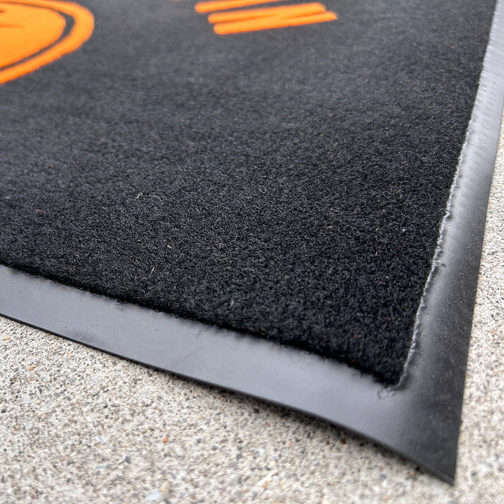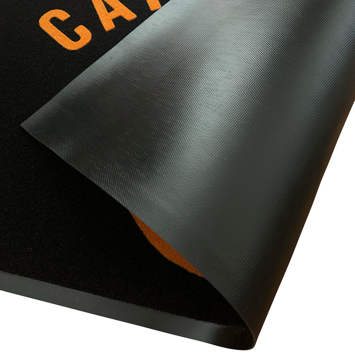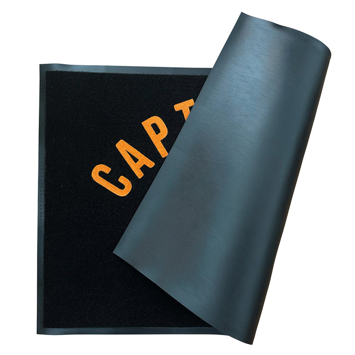オフィスや店舗〜自宅にも使え汚れや埃をしっかりキャッチ、Black x Orangeのキャプテンフィンのロゴがインパクト大のマルチフロア マット。