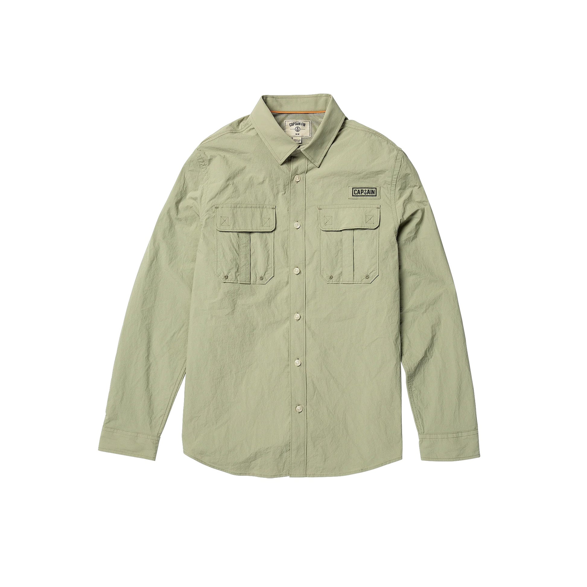 ボートでの長時間の航海やジャングルでの波乗りのためにデザインされたこの長袖ボタンアップシャツは、涼しく日差しから身を守りたいキャプテンのために作られました。UPF50のタクタイルナイロンを使用したイージールアーシャツは、あらゆるニーズに応えます。