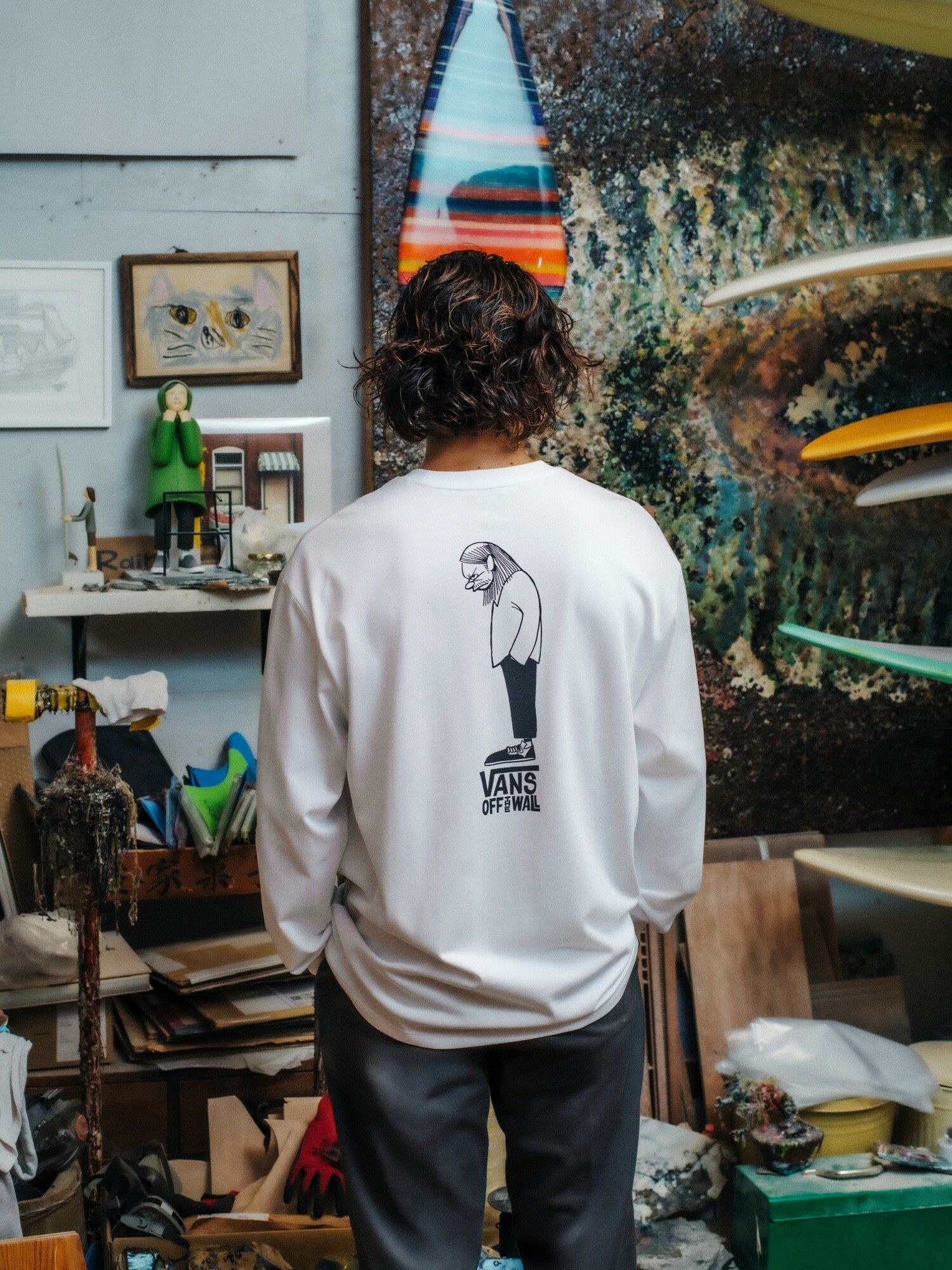 日本が世界に誇るアーティスト、花井祐介氏との本年2回目のコラボレーションは花井氏の愛猫をモチーフに、窓辺で秋空を眺め物思いにふける情景を描いた哀愁の漂うイラストレーションを展開。前回に続き、今シーズンも各アイテムにバイオベース素材、リサイクルナイロン、オーガニックコットンを採用。サーファーとして環境課題に向き合う花井氏の理念を、Vansのクラフトマンシップとデザインに落とし込んだコレクションに仕上がった。